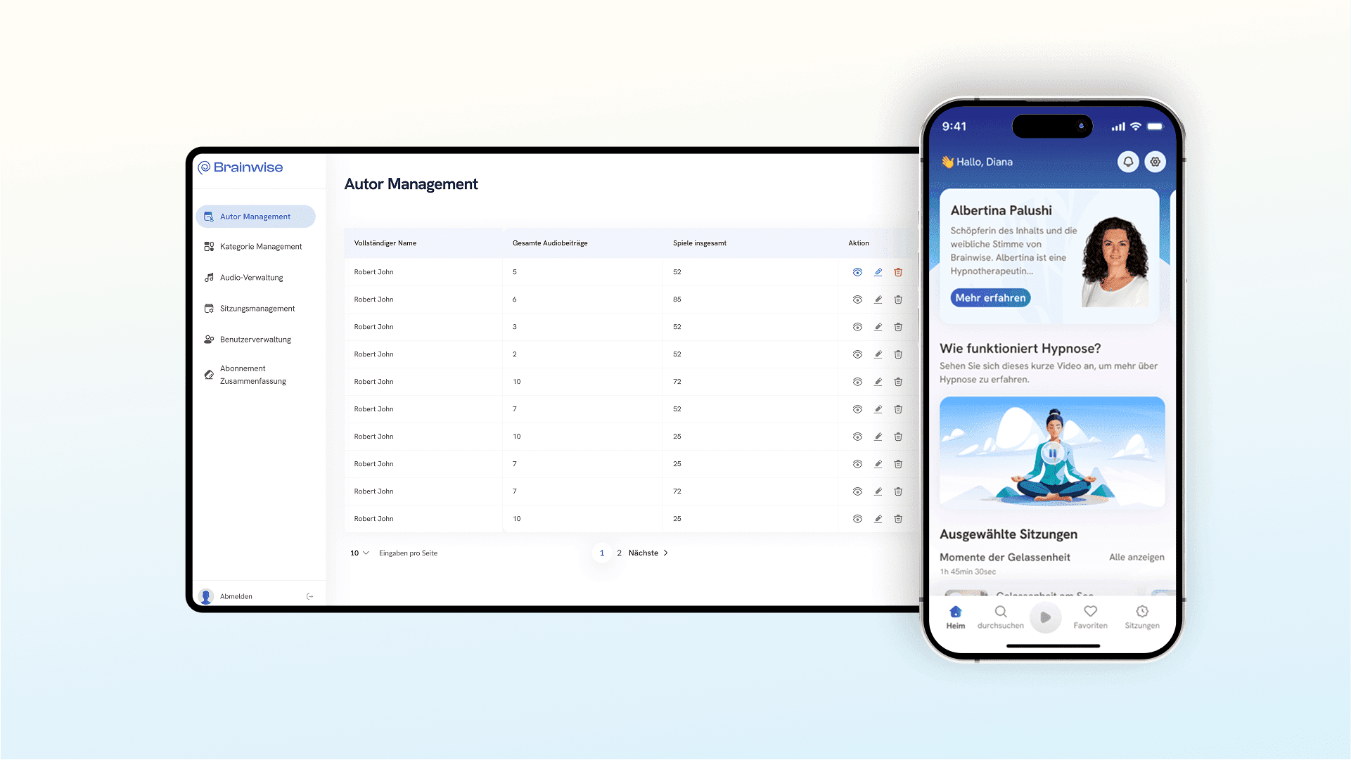 Mit einem flexiblen, personalisierbaren System macht Brainwise Hypnose alltagstauglich – jederzeit und überall verfügbar.