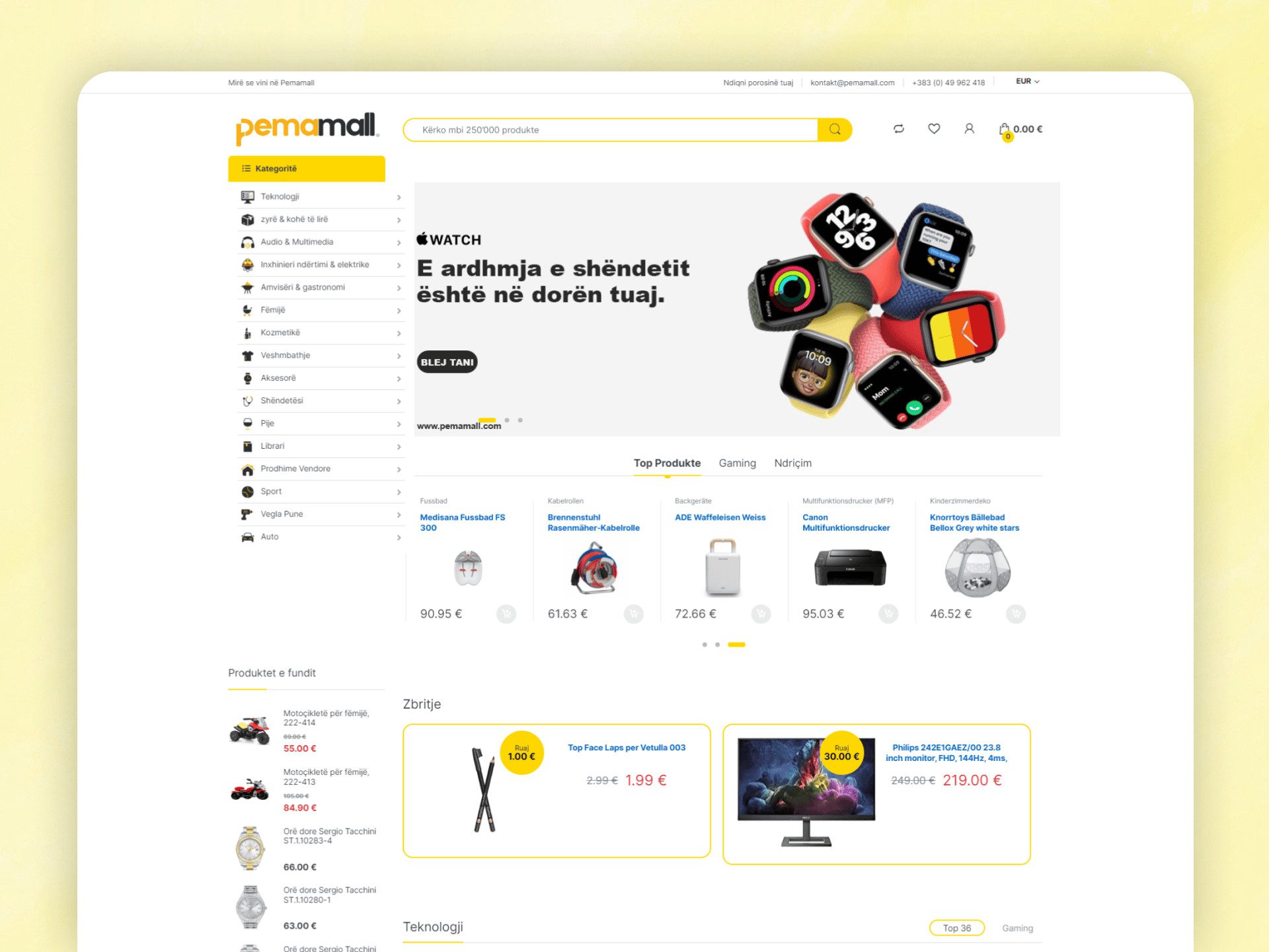 Das Projekt für Pema Mall L.L.C. umfasste die Neustrukturierung der Webseite, das Redesign des Logos und Online Shops, sowie die Steigerung seiner Nutzerfreundlichkeit und Performance.