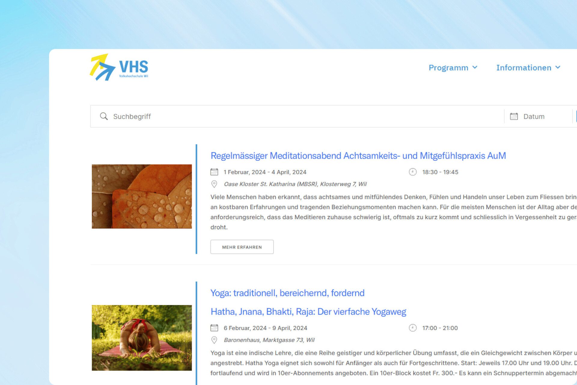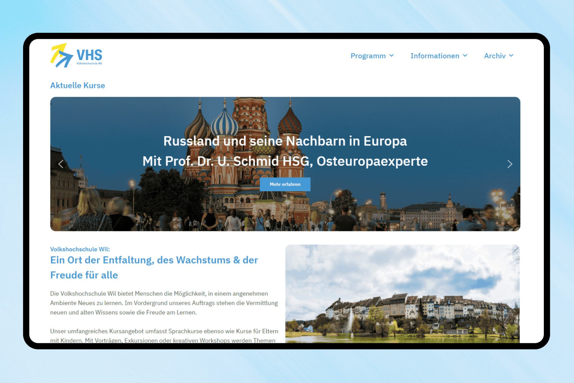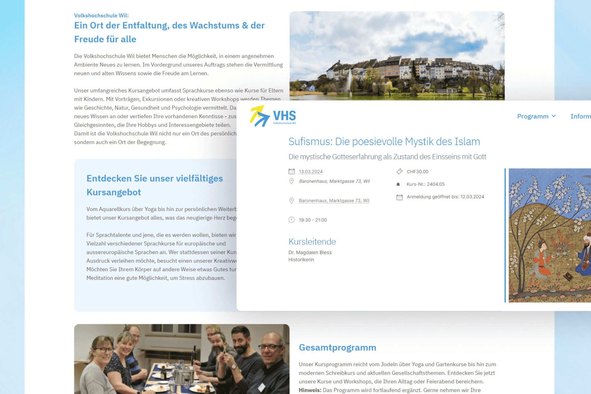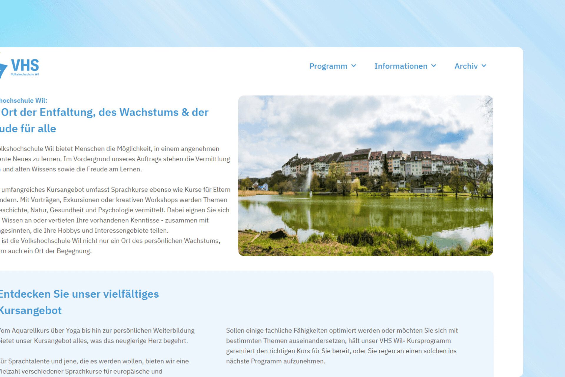 Wir haben erfolgreich das Projekt der Volkshochschule Wil umgesetzt, indem wir die gesamte Online-Präsenz neu gestaltet und das Firmenlogo überarbeitet haben.